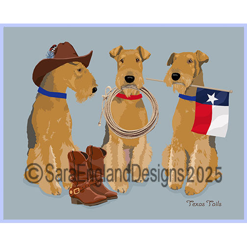 Browse Airedale Terrier art from Sara England Designs, featuring this beloved breed in whimsical settings. Shop home décor items like prints, coasters, and more and find the best Airedale Terrier gifts for any occasion.